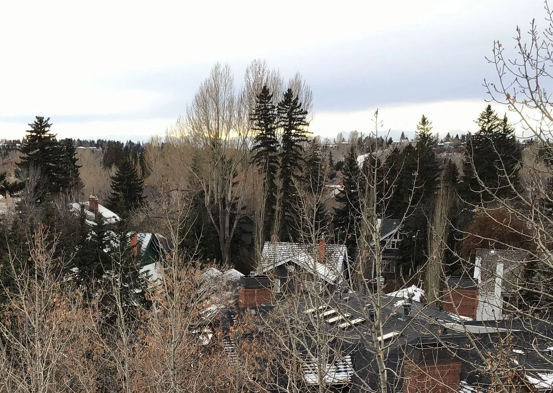 Looking west from Rideau hill down 33 Ave. S.W. over CFAC building and former curling club